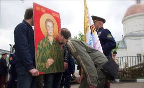 | Στρατιώτες προσκυνούν τα λείψανα του αγίου.. |